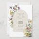 Wildblume Garden Arch Floral Wedding Einladung mit einem modernen Bogen, mit Aquarellblumen in den Farbtönen Gelb, lila, Rosa, Weiß und Rosa.