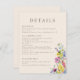 Ein Bouquet farbenfroher Aquarellfarben schmückt diese Hochzeitsdetails-Karte, die sich ideal für rustikale Hochzeiten im Frühling, Sommer und Herbst eignet. Karo in der Kollektion für die Erholung der passenden Hochzeitssuite und weiterer passender Produkte.