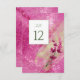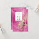 Diese elegante Hochzeitskollektion verwendet eine beeindruckende Farbpalette, die Fuchsia fedora, Kalkgrün und Wattestonenpink umfasst, um für Ihren besonderen Tag passende Geschirr- und Party-Vorräte zu erstellen. Wasserfarbenfloralen und glitzernde Farbstriche sorgen für einen auffälligen Hintergrund. Handgeschriebenes Skript in Verbindung mit einem klassischen Serif-Schriftart verleiht eine moderne Touch. Die Hochzeitskarte "Tischnummer", die hier gezeigt wird, bietet eine glitzernde Hintergrundtextur und eine Vorlage, um einfach Ihre eigene Nummer, Initialen und Hochzeitsdatum hinzuzufügen. Suchen Sie die ID954, um weitere Teile und Farboptionen für dieses Set zu sehen.