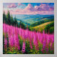 Die farbenfrohen Wildblumen auf einer weitläufigen Wiese überblicken eine landschaftliche Bergsicht und zeigen eine impressionistische Ölmaltechnik mit dynamischen, strukturierten Pinselstrichen, die die natürliche Schönheit vermitteln.