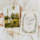 Elegante Blumenkarte mit einer zarten Blumenarrangements und eleganter Typografie + einem vorderen Foto mit einer Wildblume.