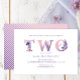 Feiern Sie Ihren zweiten Geburtstag Ihrer kleinen Wildblume mit dieser eleganten, blumengeschmückten Einladung. Mit pastellfarbenen lila Farbtönen, sanften Aquarellblüten und zarter Typografie ist es perfekt geeignet für Frühjahrsgeburtstage mit einem süßen, im Garten inspiriert Thema.