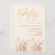 Eine elegante Einladung zum 50. Geburtstag. Cremefarbener Hintergrund mit ockerfarbenen Wildblumen in Beige, Rosa und staubgrünem Grün. 50 ist mit einem großen handgeschriebenen Stil-Skript geschrieben.