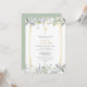 Hübsche Weisheit- und Lila-Blätter schlängeln sich über einen eleganten Goldrahmen, der Ihr Set für Taufe oder Taufdetails in klassisch elegantem Text umschließt. Entwickelt von Thisisnotme©