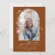 Eine hübsche, elegante Abschluss-Ankündigungskarte mit Ihrem Foto in Bogenform in einem goldenen Rahmen mit Aquarellfarben-Wildblumen und Blätter in Rosa und Grün. Der Hintergrund ist Terrakotta. "Absolvent" ist in weißem, modernem Schriftart der Kalligraphie. Die Rückseite weist ein Muster von Aquarellfarben-Wildblumen auf.