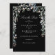 Eine elegante Wildblumen Aquarellblütenhochzeit bewahrt die Dattelkarte mit Ihren Feierlichkeiten Details Set in eleganter weißer Typografie auf einem stilvollen schwarzen Hintergrund. Entwickelt von Thisisnotme©