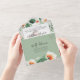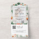 Entwerfen Sie die perfekte Hochzeitssuite mit dieser informellen, blumengeschmückten Hochzeitseinladung, die eine romantische Aquarellbilder von grünen und orangefarbenen Wildblumen enthält. Editieren Sie einfach die Vorlagenfelder, um die Braut- und Bräutigamen sowie Ihre Daten- und Standortangaben in klassischen und eleganten schwarzen Kalligraphie-Schriftart hinzuzufügen und fügen Sie eine Ihrer Lieblingsfotos in der Verlobung hinzu. Fügen Sie Ihren QR-Code hinzu, um Ihre Gäste auf Ihre Hochzeitswebsite zu leiten, um weitere Informationen zu erhalten oder um online UAWG