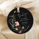Stilvolle schwarze Brautparty rund Gevor Tags mit eleganten Aquarellfarben-Wildblumen, danke, Ihr Name und Ihr Duschdatum in schicken Schriften. PASSENDE Artikel in unserer Sammlung.