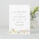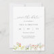 Eine hübsche Hochzeit speichert die Datumskarte mit farbigen Aquarellfarben-Wildblumen und einer kalligraphischen Schlagzeile. Fügen Sie Ihre Hochzeitswebsite und QR-Code auf der Rückseite.