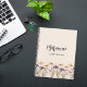 Ein beige Hintergrund. Gelbe und lila Wildblumen. Personalisieren und fügen Sie Ihren Namen und einen Titel. Graue handgeschriebene Stilschrift.