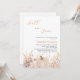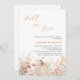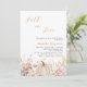 Ein elegantes Herbst in Liebe Bridal Dusche Einladung. Ein weißer Hintergrund. Die Einrichtung besteht aus Wildblumen in Beige, Rosa und Kürbis.