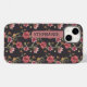 Telefonzelle mit zartem Muster von Aquarellfarben-Wildblumen. Der dunkle Hintergrund ist ein auffallender Kontrast. Der Fall ist mit Ihrem Namen personalisiert in einer Typografie im All-Caps-Stil auf einem rosa Band. Wird ein großartiges Geschenk für das Mädchen in deinem Leben. Großes kleine Geschenk