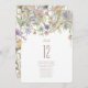 Mit dieser atemberaubenden Tischnummer-Karte im Vintagen Jugendstil stärken Sie Ihr Hochzeitstil. Die Wildblumen sind elegant in zarten Rosa-, Pastellblau-, sanften Grüntöne- und Pfirsichtönen gehalten und verleihen dem Ganzen einen anmutigen und zeitlosen Look. Das kaskadierende Blumendesign an der Spitze umrahmt die Tischnummer und die Namen der Gäste wunderschön und fügt Ihrem Hochzeitsempfang eine Touch naturlich inspiriert Eleganz hinzu. Die erdigen Töne und fließenden Linien des Kunstwerks rufen ein Gefühl von raffinierter Schönheit hervor und machen diese Karte zu einer perfekten Ergänzung zu jedem anspruchsvollen Ereignis.