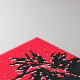 Ein abstraktes Kunstdesign aus schwarzen Wildblumen, das gegen einen roten Himmel schweigend ist.