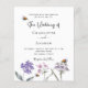 Ein weißer Hintergrund. Mit Bienen dekoriert und Wildblumen in Violett und Rosa gestrichen. Personalisieren und fügen Sie Ihre Namen und die Details.