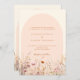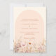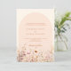 Eine elegante Einladung zur Hochzeit. Cremefarbener Hintergrund und pfirsichfarbener Bogen. Die Wildblumen sind in Beige, Rosa und Aquarell gehalten. Zurück: Fügen Sie den URL/Link zu Ihrer Hochzeitswebsite für weitere Details und/oder UAWG hinzu.