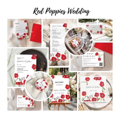 Red poppies with greenery wedding suiteDesignt von Caroline Bonne Müller