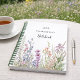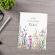 Eine weiße Hintergrundfarbe. Die Wildblumen sind in Rosa, lila und Blau gehalten. Fügen Sie einen Namen und ein Datum hinzu.