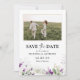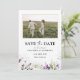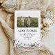 Lavendel Save the Date mit Foto Flat Card. Dieses stilvolle und elegante Hotel Save the Date mit der Foto Flat Card verfügt über einen wunderschönen handbemalten Aquarell Lila Greenery Lavender. Finden Sie passende Artikel in der Lila Grünflächen-Lavendel-Sammlung.