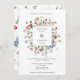 Eine elegante Hochzeitseinladung mit einem mitteleckigen Rahmen, umgeben von farbenfrohen Aquarellfarben-Wildblumen. Auf der Rückseite der Einladung, ist ein Muster von Aquarellfarben-Wildblumen.