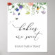 Babys sind süß, nehmen Sie bitte eine Leckerei! Leckerei-Schild mit einer Darstellung der Aquarellfarben-Wildblume und der brisanten Bienen mit dem Wort "Babys sind süß" in einem lustigen Kalligrafieschrift.