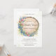 Aquarellfarben Wildblumen & Blueberry Rustikale Brautdusche Einladungskarte. Romantischer Stil mit Heidelbeeren, Lavendel-Blume, Klee und Eukalyptus ist perfekt für eine rustikale Hochzeit im Sommer. Grundlage der Komposition ist ein Kranz von Wildblumen und ein Holzkreis. Wasserfarbener Spritzer ergänzt die Zusammensetzung von Blume und Beeren und verleiht ihm einen besonderen Charme.