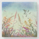 Eine wunderschöne Szene von lebhaften und bunten Wildblumen im Wind-Set vor einem blauen und grünen Himmel mit Sternen.