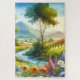 quelllandschaftaquarelllandwildblumelandschaftliche talkunstsommerlandschaftblühende blumefriedliche flussansichthügelmalereikerndekorationgenerativitätsinhalt