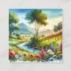 In dieser landschaftlichen Aquarelllandschaft, in der blühende Wildblumen unter hohen Bäumen und sanftem, goldgelbem Licht tanzen, ist ein lebendiges Frühlingstal voller Farbe. Die hügeligen Hügel und die weit entfernten Berge verblassen sanft in den Hintergrund, was die ruhige Freude der Landschaft am Morgen weckt. Feine Blumenfarben und malerische Texturen bringen Harmonie, Wärme und rustikalen Charme hervor, der perfekt ist, um jedem Raum eine natürliche Ruhe zu verleihen. AI generierte Kunstwerke.