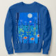 Sweatshirt in einer Fantasy-Szene von Wildblumen im Wald, unter dem Vollmond, in Abend blau und türkis