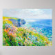 Eine eindrucksvolle Landschaft einer Küstenstraße, bedeckt mit pulsierenden Wildblumen. Die sanften, ausdrucksvollen Pinselstriche erfassen die Schönheit der Natur durch das Meer in voller Blüte.