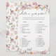 Die Einführung der "Wildblumen Was ist in eurem Purse Game?" Wir haben diese köstliche Aktivität sorgfältig kuratiert, maßgeschneidert für diesen besondere Anlass. Dieses Spiel verleiht Ihrem Event ein Gefühl von Spaß und Spannung, wodurch das Erlebnis insgesamt verbessert wird. Im Mittelpunkt dieses Spiels stehen die Wildblumen im Aquarellstil, die weiche, beruhigende Lavendel-, Pfirsich-, Creme- und andere Schattierungen elegant kombinieren und durch eine Reihe von stilvollen Schriftart ergänzt werden. Wenn Sie in diese Aktivität eintauchen, haben Sie die Möglichkeit, den Inhalt Ihrer Geldbörse zu erkunden und ihn mit den Artikeln in der Liste abzustimmen. Es ist ein kreativer Weg, Ihre Gäste zu begeistern und eine Touch Launen zu Ihrem Feiern hinzuzufügen. Passen Sie das Spiel nach Ihren Wünschen an und sorgen Sie für ein einzigartiges Ambiente, das Ihre Teilnehmer begeistern und unvergessliche Momente während dieses bedeutsamen Ereignisses schaffen wird.