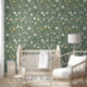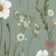 Hübsche Wildblumen schälen und kleben Tapeten auf einem grünen Hintergrund für eine ruhige Frühling und Sommerluft.
