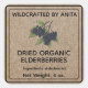 Wildcrafts getrocknete Ästerbeeren Label Sticker Kraft Papier Design Hintergrund