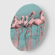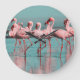 Wilde afrikanische Vögel. Eine Gruppe afrikanischer Flamingos, die an einem sonnigen Tag durch die blaue Lagune wandern. Ein tolles Design für Wildvogelliebhaber. Es verleiht dem Design eine besondere Form.