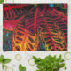 Dieses Küchentuch ist mit originalen Kunstwerken von ZoeSPEAK, einem Croton-Foto, einer tropischen Gartenanlage-Pflanze mit verschiedenen Blätter, die wie ein wildes Tierbild im Dschungel aussehen. Die Blätter beginnen als grün und gelb und werden dunkler in rötlich-orange und tiefblau-grün, wenn sie in einer wilden Umgebung wachsen.