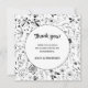 Moderne monochrome Schwarzweiß-Blume-Zeichnungen. Eine wunderschöne passende Karte, um Ihren Hochzeitsgästen für einen schönen Tag zu danken.