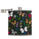 Wilde Blume und Schmetterlinge auf schwarz Flachmann