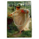 Dieses Design zeigt ein Gemälde des englischen Künstlers Sir Edward John Poynter (1836-1919), der als Präsident der Königlichen Akademie der Künste diente. Es zeigt eine hübsche junge Frau, die ein diaphanisches, cremefarbenes Kleid aus dünnem Stoff trägt. Die Konturen und Kurven ihres wunderschönen Körpers können durch die Kleidung gesehen werden. Die Frau läuft in einer ländlichen Idylle, während sie einige rote Blume sammelt, die auf dem Hügel wachsen. Sie hat einen Korb in einer Hand, mit dem sie die leuchtend bunten Blume sammelt, die sie gesammelt hat. Es ist eine unglaublich beeindruckende Darstellung weiblicher Schönheit und der Freuden der Natur. Auf den Hügeln wächst Gras und füllt sich um die junge Frau herum, und am Horizont wachsen eine Baumgruppe. Das Originalwerk wurde 1880 von Edward Poynter gemalt.