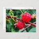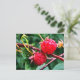 Wilde rote Himbeeren sind das Thema dieser schönen Art Postkarte. Zwei saftige Beeren mit Cerise-Farbe sind an den roten Brambles befestigt. Grüne Blätter und ein türkisfarbener Aqua-Hintergrund runden das abstrakte Design ab. Die Fotografie wurde digital verbessert, um ein impressionistisches Gefühl zu schaffen.