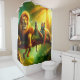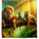 Dieser Duschvorhang hat einen Löwen, Tiger und eine Hauskatze, die darauf abgebildet ist.
