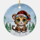 Wilde Katzenliebhaber Wald-Wildlife-Kätzchen Keramik-Ornament mit einer lustigen Mischung aus Leopardenflecken und diesem süßen Weihnachts-Cartoon-Grafik mit personalisierbaren Weihnachtsmannhüten. Anpassen durch Ändern des Namens. Perfektes personalisierbares Geschenk für jeden Katzen-Enthusiasten oder Tierdruck-Fan. Die beidseitige Gestaltung sorgt dafür, dass Ihr Baum immer festlich und komplett aussieht. Fügen Sie Ihrem Dekor mit diesem einzigartigen, perfekten Weihnachts-Andenken einen besonderen Touch und festliche Stimmung hinzu!