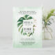 Elegante moderne tropische grüne Blätter umgeben Ihre Namen in einem rechteckigen Rahmen mit Aquarellfarben hinter und auf der Rückseite. Eine Kombination aus kühlem Kalligraphie und minimalistischem, zeitgenössischem Textlayout macht es zu einer trendigen Hochzeitssuite. Diese Tropische Hochzeitskarte eignet sich perfekt für einen Strand oder eine Hochzeit in Urlaubsort. Fügen Sie Ihren Eltern-Namen und Ihre Hochzeitsdetails mithilfe der Vorlage hinzu