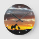 Wilde Mustang Mare und Fohlen-Silhouette mit Sonne Runde Wanduhr
