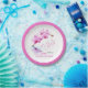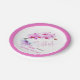 Teller aus Aquarellpapier mit Wild-Orchideen-Blume blühen in hellen Lavendel-, Rosa-, lila Farbtönen. Gentle feminine Birthday (50.) Party Teller mit leicht anpassbaren Textfeldern.