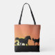 Wilde Pferde, die bei Sonnenuntergang Silhouette tragen. Dieses Design sieht auf dieser Totbeutel wirklich effektiv aus