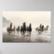 Wilde Pferde am nebeligen Strand Poster
