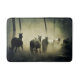 Majestätisches Bild von wilden Pferden, die durch einen scheußlichen Wald laufen.