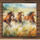 Canvas drucken mit einer schönen Aquarellmalerei von 3 Wildpferden, die durch große Grasfelder laufen.