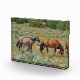 Wilde Pferde weiden auf dem Wyoming-Feld. Sie dürfen frei herumrauchen. Diese beiden stellten sich für ein Foto.